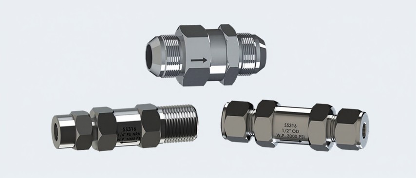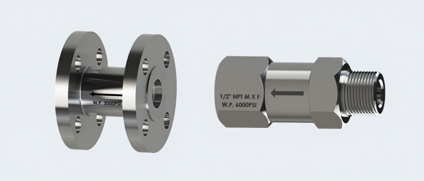 Non-Return Valves (NRV), also known as check valves, are designed to allow fluid flow in one direction while preventing reverse flow, ensuring system safety and preventing contamination or pressure loss.